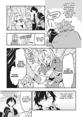 After coming to the aid of a young noble named Merielle, Haruka finds himself with a free pass to leave and enter the city at his own discretion! What's the first thing on his mind? Running back to the woods so he can resume his loner life, of course!